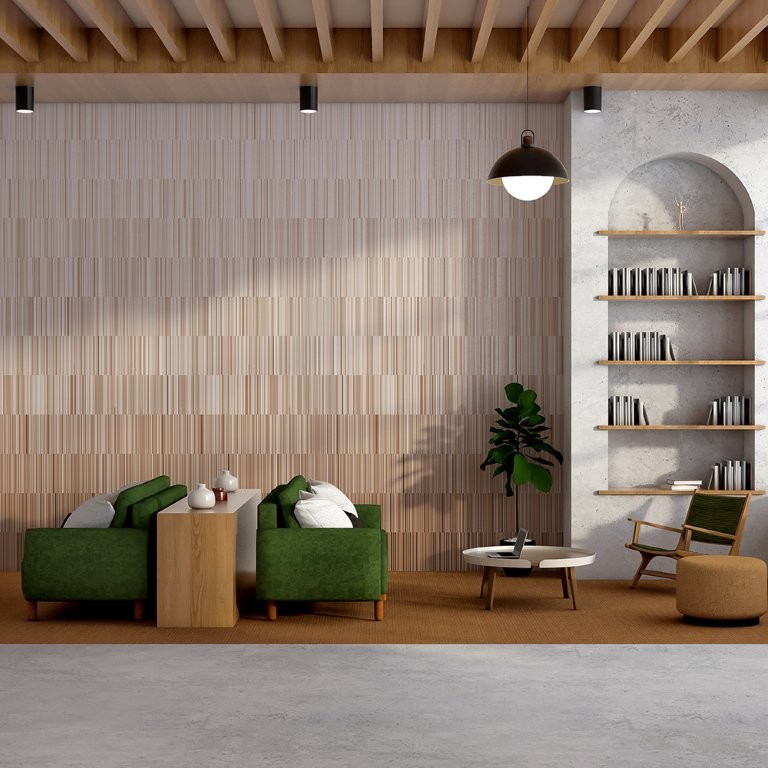 Axis Fade is a contemporary panel design defined by fine vertical lines that transition smoothly from soft light tones to deeper, earthy hues. The gradual tonal shift creates a sense of movement and depth, making the wall feel dynamic yet balanced. Its linear rhythm adds architectural strength, while the subtle gradient brings warmth and sophistication to the space. Ideal for feature walls, hotel lobbies, luxury residences, and modern commercial interiors, Axis Fade acts as a statement surface that elevates the overall design without overpowering the space.