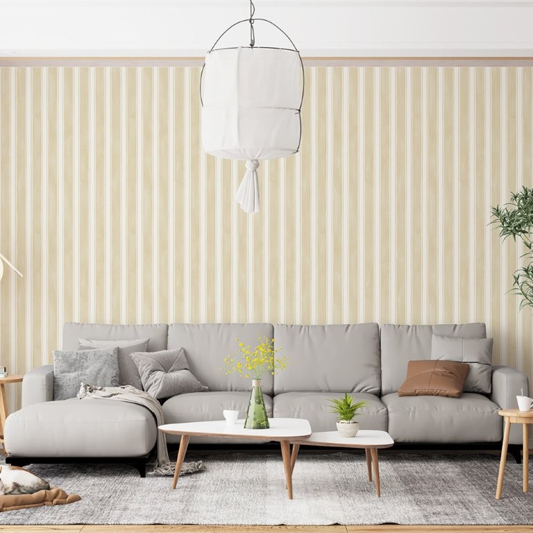 The design features alternating bands of varying widths, accented by delicate narrow lines that add subtle rhythm and depth. A gentle, fabric-like texture runs through the stripes, giving the surface a natural, brushed appearance. Overall, the pattern feels calm, balanced, and timeless, offering understated elegance suitable for both modern and classic settings.