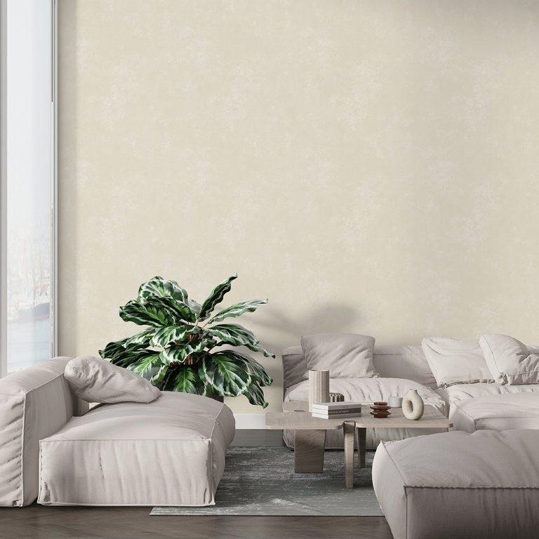 A warm, breathable wallpaper with a soft linen wash and subtle chalky mottling. Its gentle, organic texture reads as a calm, neutral field from across the room and reveals handcrafted nuance up close, lending rooms quiet warmth and tactile depth. Ideal for serene bedrooms, minimalist living spaces, and refined commercial interiors seeking a timeless, versatile backdrop.